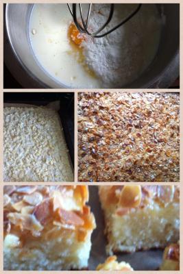 mit dem Mixer oder der Küchenmaschine verrühren bis der Teig Blasen wirft. Hohes Backblech mit Backpapier auslegen und den Teig darauf glattstreichen.